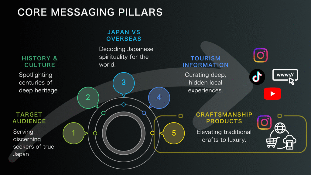 Using visual-based social media platforms like Instagram, TikTok, and YouTube, we share the appeal of Japan’s cultural backgrounds and travel experiences. We spark interest among potential customers (awareness), build deep engagement, and seamlessly guide them to our own EC site, creating an integrated digital marketing system.